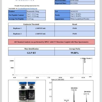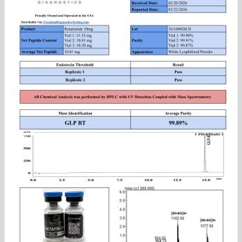 Each vial of 3G-RT 10mg is manufactured under meticulous quality control procedures, ensuring consistency in formulation and performance. With an exceptional 99%+ purity level, researchers can proceed with confidence knowing their results are based on uncompromised accuracy. To further support transparency, every batch comes with independently verified 3rd-Party COAs, giving professionals the documentation they need to validate their experiments.
