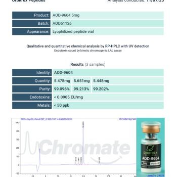 At Orbitrex Peptides, we specialize in delivering peptides that meet the highest standards of purity and reliability. Our AOD-9604 5mg is manufactured for advanced research purposes, ensuring that scientists and laboratories receive consistent, verifiable results every time.