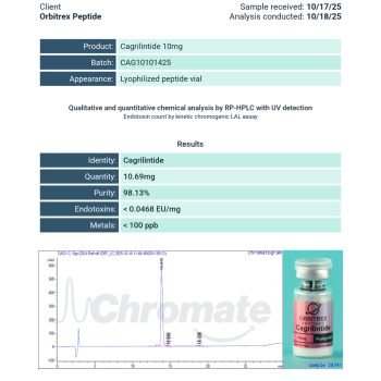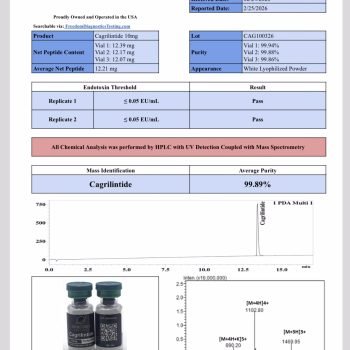 Every vial of CAG-10mg is tested for purity, net content, endotoxins, heavy metals and accompanied by 3rd-Party Certificates of Analysis (COAs) to guarantee transparency and reproducibility. Researchers can rely on this peptide for dependable outcomes in controlled laboratory studies.