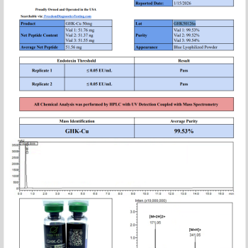 Each vial of GHK-Cu 50mg is backed by 3rd-Party Certificates of Analysis (COAs) and verified at 99%+ purity, giving researchers complete confidence in their work. With exclusive group testing promos and the convenience of same-day shipping, this peptide delivers both quality and efficiency to laboratories and research teams.