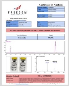 Each batch of Sermorelin 10mg is independently validated with 3rd-Party Certificates of Analysis (COAs), confirming 99%+ purity. This guarantees that research teams receive a dependable product for precise experimental applications.