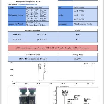 Wolverine Blend undergoes rigorous quality control procedures and independent 3rd-party verification, guaranteeing 99%+ purity for every vial. This commitment to transparency ensures that researchers can move forward with confidence, knowing they are working with a peptide blend that has been tested, validated, and proven to meet stringent specifications.